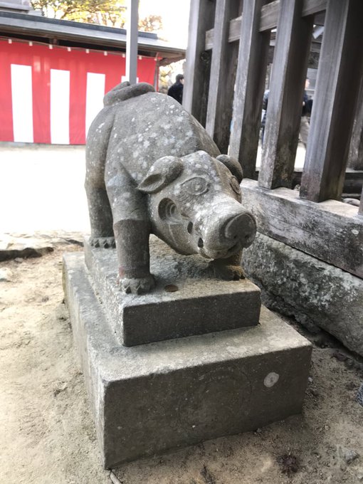 これは関取のような狛犬か?イノシシか?
